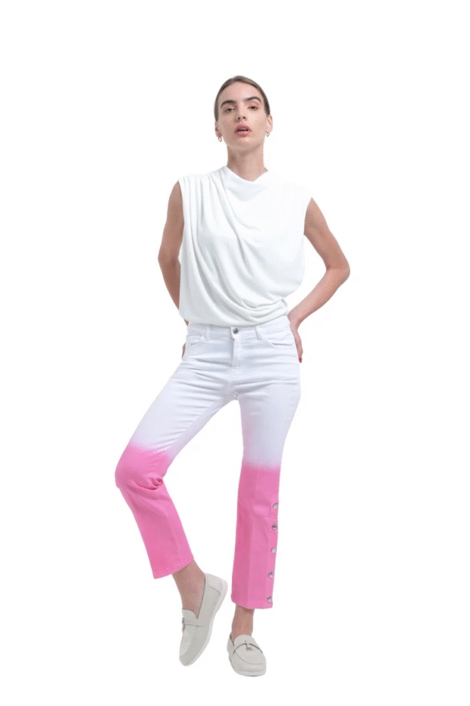 بنطلون Cotton Candy Dip-Dye Denim مصنوع من قطن عضوي 100% ليمنح ملمسًا طبيعيًا مريحًا طوال اليوم. يتميز بتدرج لوني أنيق يبدأ من الأبيض وينساب بلطف نحو الوردي الفاتح عند الأطراف السفلية، مما يمنحه لمسة أنثوية مميزة.
